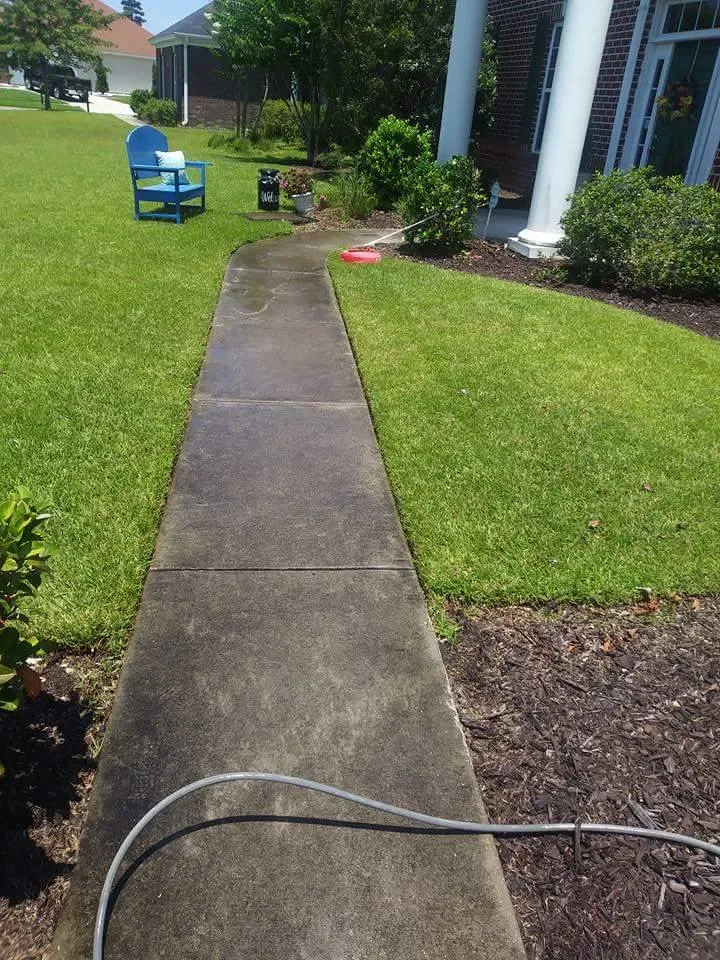 Safety is our first priority. We use a strict property protection protocol that includes pre-soaking all vegetation, covering sensitive plants, and applying a neutralizing agent after the wash is complete. All of our solutions are 100% biodegradable and pet-safe once dry.
